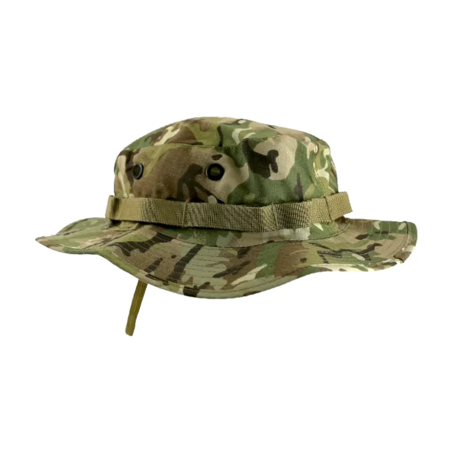 Матеріал, з якого виготовлена панама, має стійкість до розривів. Візерунок з широкими полями та стрічкою, що проходить навколо капелюха для додаткового маскування.